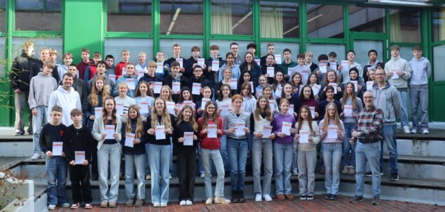 Das Hüffertgymnasium kann erneut auf einen bemerkenswerten sportlichen Erfolg blicken: Bei der diesjährigen Verleihung des Sportabzeichens für das Jahr 2025 legten die Schülerinnen und Schüler insgesamt über 100 Sportabzeichen ab. Allein in den Jahrgangsstufen 7...