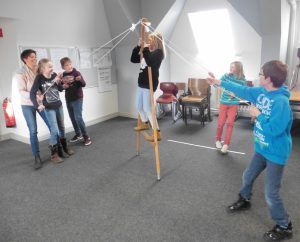 Ein Schulhalbjahr ist fast vorbei und unsere neuen Schüler in der fünften Jahrgangsstufe haben sich an unserer Schule langsam eingewöhnt. Neue Freunde wurden gefunden, Freundesgruppen haben sich gebildet und damit kann es aber auch zu Spannungen und Konflikten kommen. Um diesem Vorzubeugen hat das Hüffertgymnasium das Fair Mobil eingeladen. Hierbei handelt es sich um ein Programm der Westfälischen Provinzial Versicherung, dem Jugendrotkreuz Westfalen- Lippe, der Schulpsychologischen Beratungsstelle der Stadt Münster sowie dem Arbeitskreis soziale Bildung und Beratung (asb). Das Fair Mobil selbst ist ein mobiles Einsatzfahrzeug und enthält verschiedene Parcoursstationen voller Ideen, Themen und Aktionen. In Gruppen werden mit Schülerinnen und Schülern Wahrnehmungs- und Diskussionsübungen sowie Erlebnisspiele durchgeführt. Diese bieten die Möglichkeit an, gemeinsame Aspekte positiven sozialen Verhaltens zu erleben. Sensibilisierung für Gewalt und Konflikte im Schulalltag, Förderung von Kooperation sowie Aggressions- und Spannungsabbau stehen als Ziele dabei im Vordergrund. Intensiv und engagiert nutzten unsere Schüler der Klassen 5a bis 5d die Parcoursstationen. Anschließende Gespräche machten die Schwierigkeiten im Gruppenprozess aber auch die Stärken deutlich. Zur Verbesserung wurden gemeinsame Lösungsansätze erarbeitet. Unsere Schüler bewerteten diesen Erlebnistag sehr positiv. Sie nehmen viele Anregungen mit, die ihnen das Agieren in den Gruppen erleichtert und es ihnen ermöglicht, Anzeichen von Konflikten zu erkennen und zu lösen. Gestärkt geht es nun wieder in den Schulalltag. Die Teamer des Fair Mobils haben gekonnt und einfühlsam die Gruppen angeleitet. Unterstützt wurde das Team von unserer Schulsozialarbeiterin Elke Dierkes und dankenswerter Weise auch von vielen engagierten Eltern.