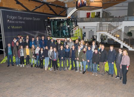 Zuerst wurden im Technopark Informationen zur Firma Claas präsentiert, bevor anschließend bei einer Werksbesichtigung die Produktion der Landmaschinen vorgestellt wurde. Neben dem Lackieren und Schweißen der Einzelteile wurde uns eine Produktionslinie gezeigt, an der am Tag bis zu vierzig Mähdrescher hergestellt werden. Nach der interessanten Besichtigung lud die Firma Claas zu einem leckeren Mittagsbuffet ein. Der letzte Programmpunkt war eine Vorstellung der Firma aus der Sicht der Auszubildenden, die über die verschiedenen Karrieremöglichkeiten bei Claas informierten. Kurz vor der Heimreise konnten wir nochmal alle Landmaschinen in der Ausstellungshalle besichtigen.
