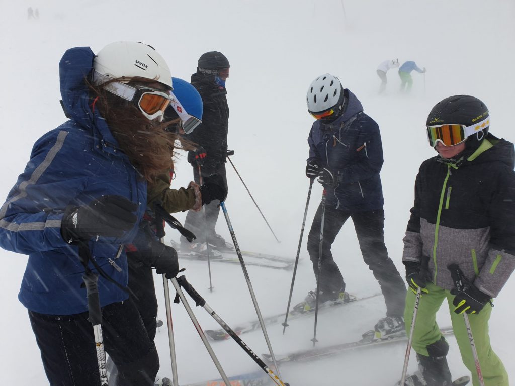 Neben dem Spaß am Skifahren trägt auch die beeindruckende verschneite Bergwelt der Zillertaler- Alpen dazu bei, dass diese Woche allen Beteiligten nachhaltig in sehr guter Erinnerung bleibt. Dem konnte auch der heftige Schneesturm am dritten Tag keinen Abbruch tun. Nach der Mittagspause fuhren die Gruppen zu ihren Übungshängen, als plötzlich ein Schneesturm mit Böen von 160 km/h auftrat. Innerhalb von Minuten wurden die Lifte angehalten und die in den Sesselliften sitzenden Skifahrer wurden heftig durchgeschaukelt. Einige unserer Gruppen wurden dann so durch einen Notbetrieb zu den Liftstationen gefahren. Andere Gruppen wanderten durch das Skigebiet zurück zur Mittelstation, von wo aus noch Gondeln ins Tal fuhren. In den verbleibenden Tagen wurden wir dann aber mit schönstem Sonnenschein entschädigt.