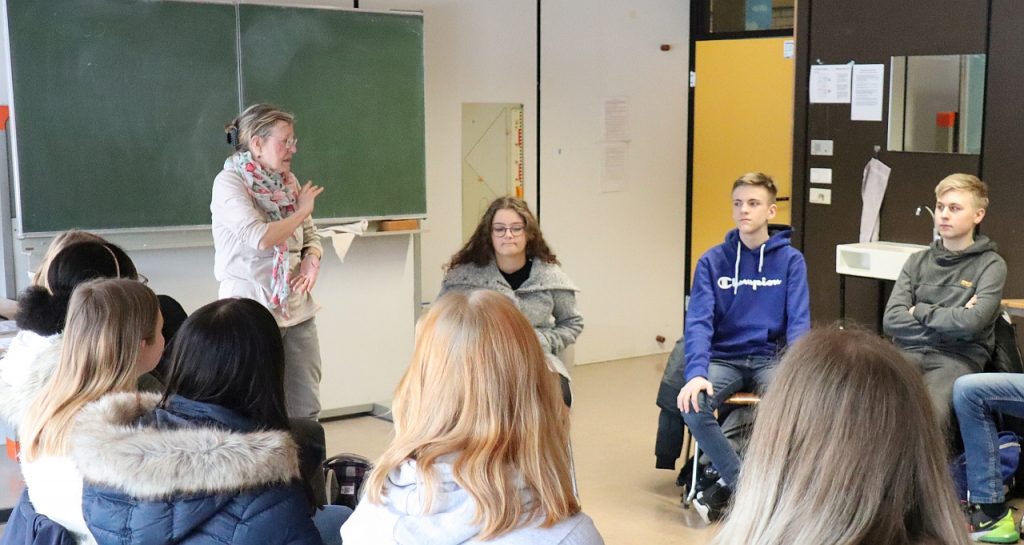 Die 61 Schüler*innen durchliefen anschließend in Gruppen einen Parcours mit 4 Stationen, indem sie sich kreativ, spielerisch und kognitiv mit dem Suchtmittel Cannabis auseinandersetzten. Bei der Moderation der Stationen erfuhren die Fachfrauen der Sucht- und Drogenberatungsstelle Unterstützung von Dr. Ingeborg Philipper und der Schulsozialarbeiterin Elke Dierkes.