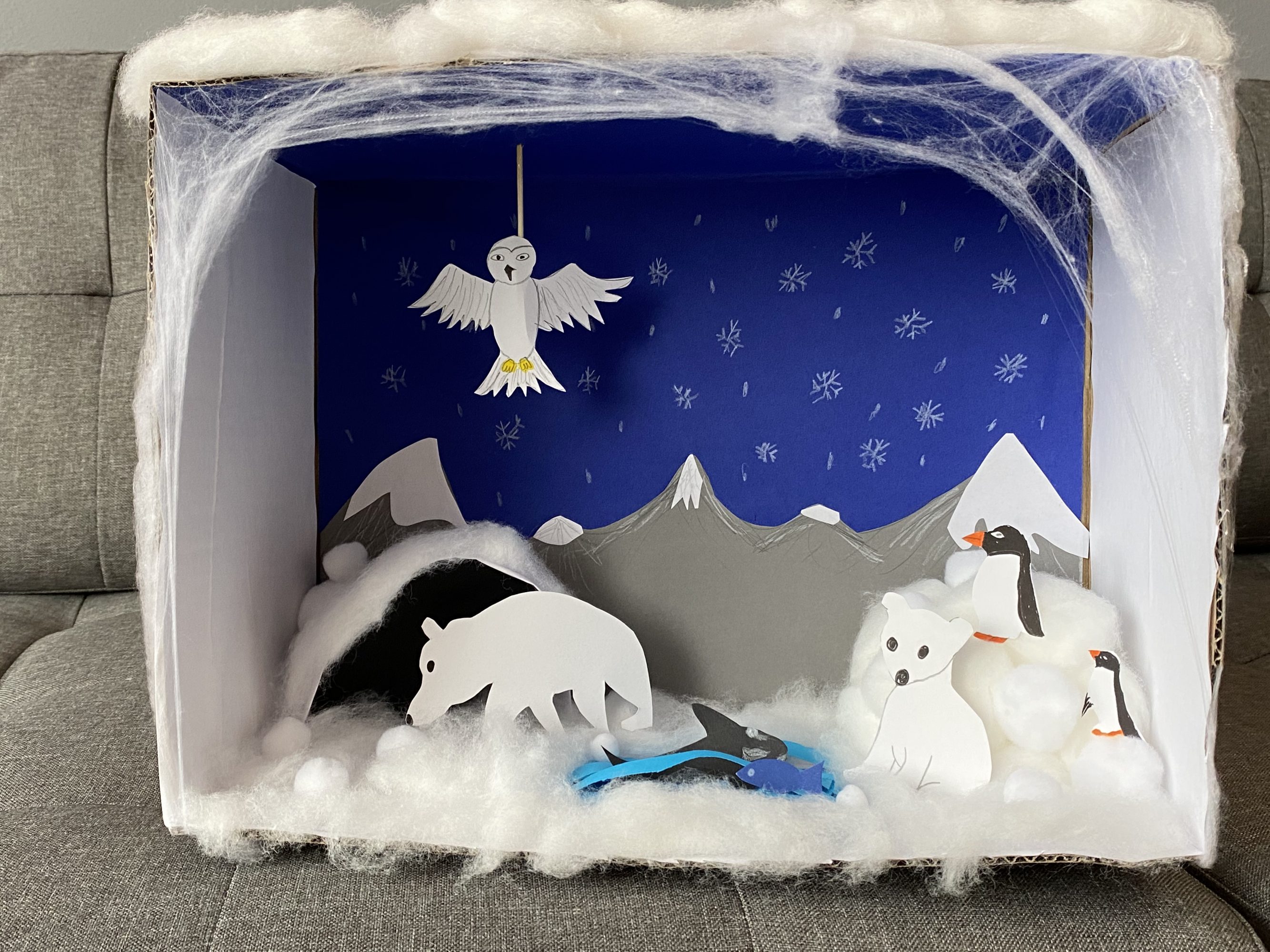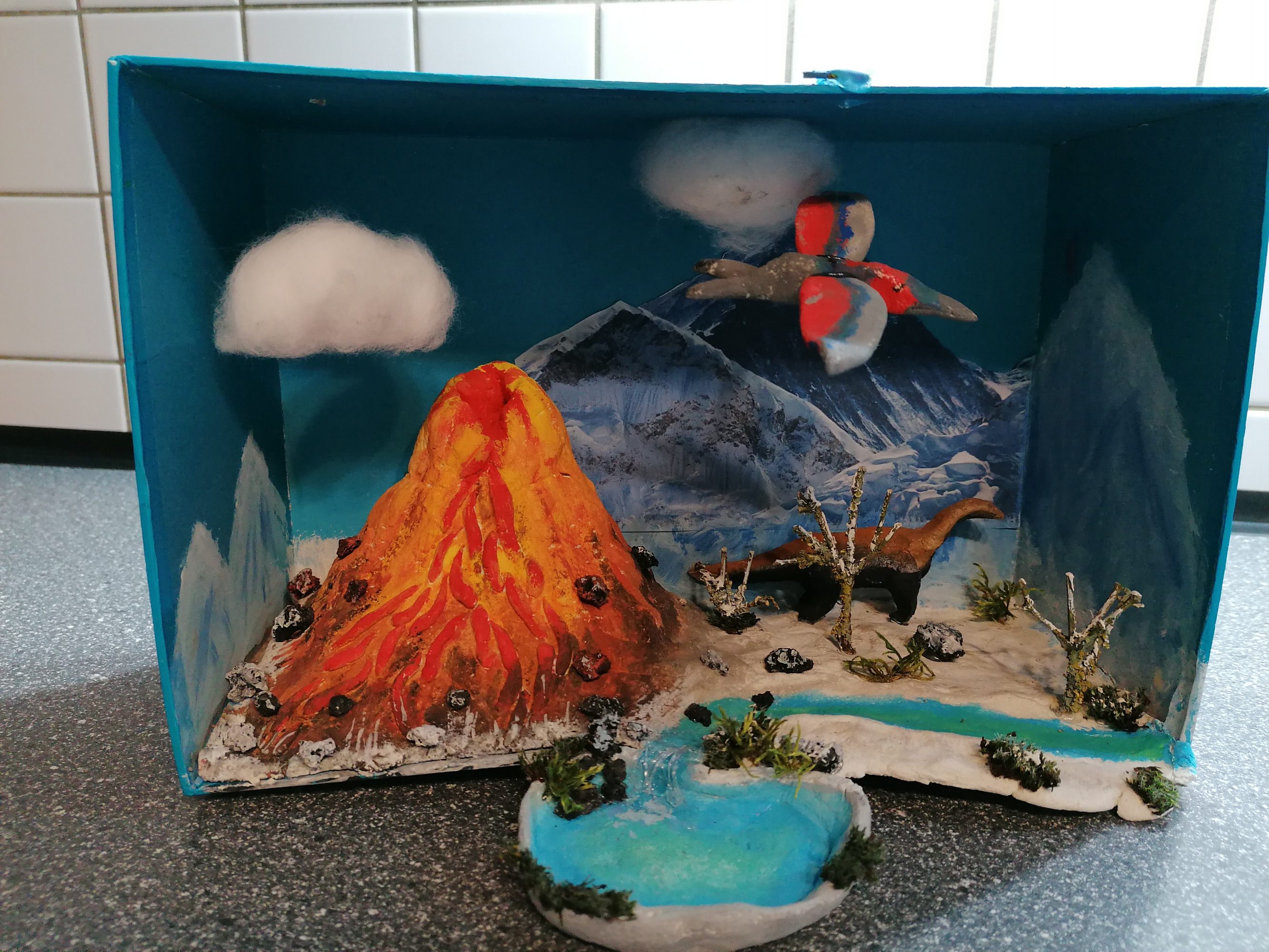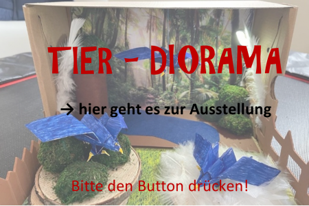 Die SchülerInnen der Klasse 6c haben sich im Kunstunterricht mit den Lebensräumen von Tieren auseinandergesetzt und dazu ein Diorama in einem Karton erstellt.