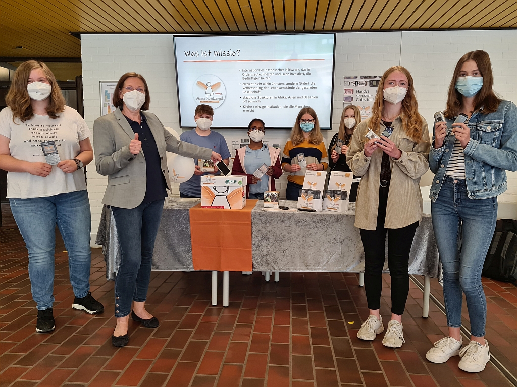 Heute begann die Einsammelaktion von alten Handys. Auch Schulleiterin Susanne Krekeler gehörte zu den Spenderinnen.