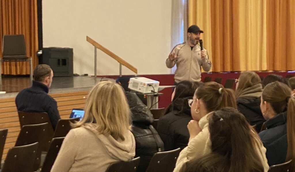 Am Donnerstag, den 11.01.2024 hat der jüdische Rapper Ben Salomo vor den drei 10. Klassen und der Jahrgangsstufe Q1 einen Vortrag gehalten. Er berichtete über seine ganz persönlichen Erfahrungen mit Antisemitismus. Bereits im Alter von 11 Jahren als sein damals bester Freund herausfand, dass er jüdisch ist, musste er erfahren, dass diese Tatsache gefährlich werden kann. Am nächsten Tag lauerte sein Freund ihm mit älteren Jungs auf und verprügelte ihn.