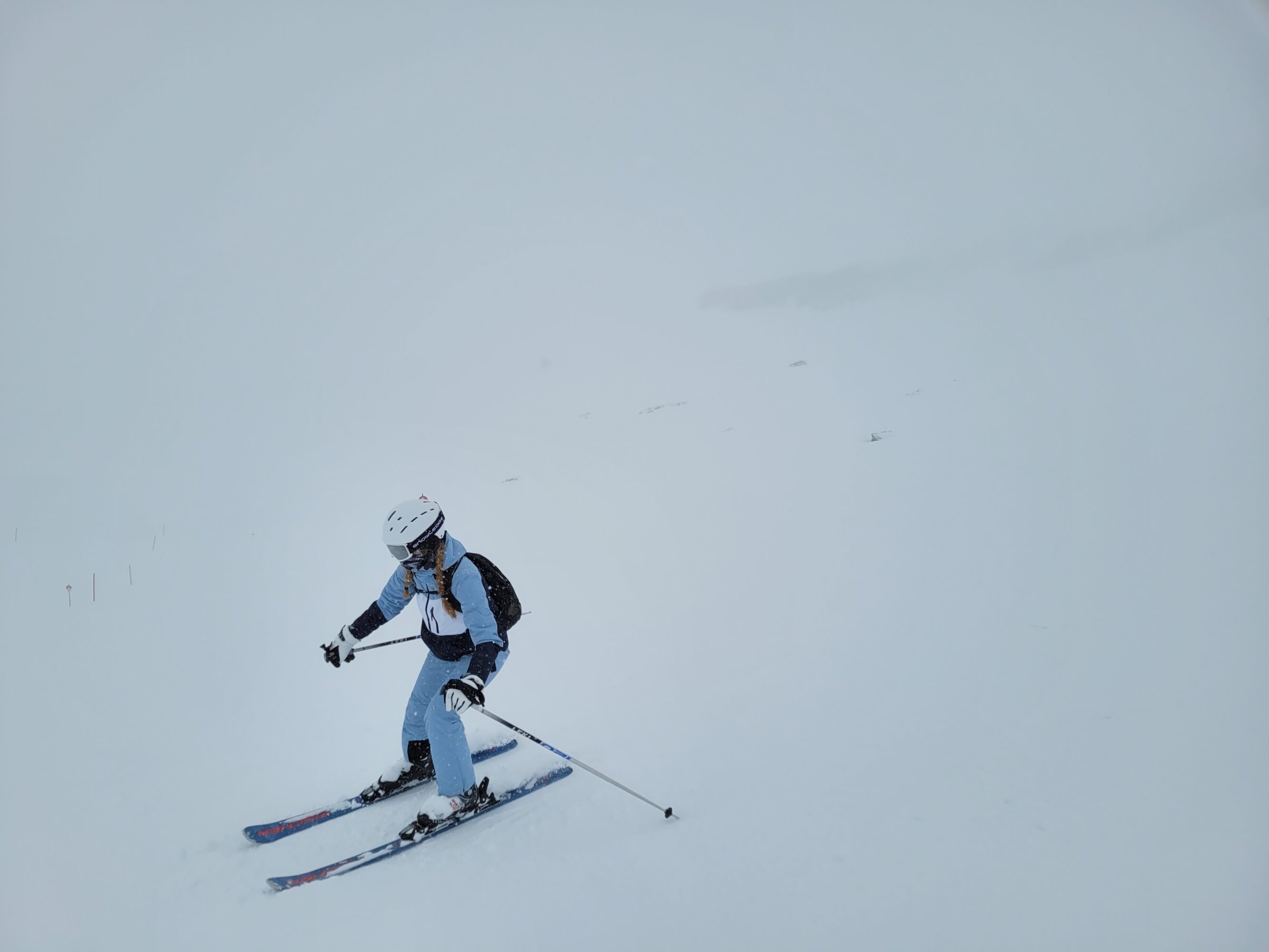 Zum Ende der Woche hin, hatten sich die Wetterverhältnisse zwar verschlechtert, aber die Schülergruppe sah dies als Chance, noch mehr an den individuellen Fähigkeiten zu arbeiten. So wurde ein Slalomwettkampf veranstaltet, bei welchem die Schülerinnen und Schüler ihre Geschwindigkeit bei zwei Durchgängen möglichst beibehalten sollten. Mit lediglich einer zehntel Sekunde Differenz zwischen den beiden Abfahrtszeiten gelang es Vanessa Lepihov die Piste als strahlende Siegerin zu bezwingen.