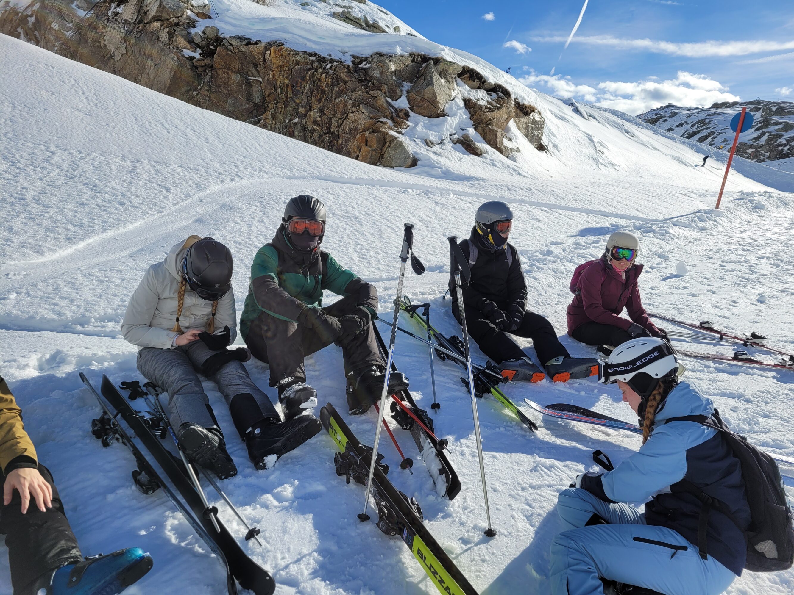 Nach den ersten Tagen auf Brettern teilten sich die Schülerinnen und Schüler der Q1 auf den Pisten am Ankogel und am Mölltaler Gletscher in kleinen Gruppen auf und wagten auch alleine die Pisten zu bewältigen –manchmal sogar auch kleine Sprünge zu wagen. Diejenigen die zu Beginn der Fahrt noch Unsicherheit verspürten, wurden von Zeit zu Zeit immer sicherer.