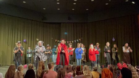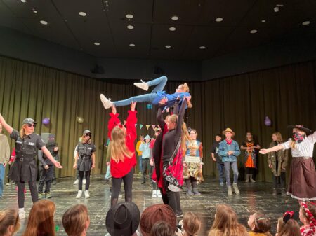 Schülersprecherin Viola Hennig führte zusammen mit ihrem Team durch das unterhaltsame Programm. Kleine Sketche, verschiedene Tänze und eine Polonaise sorgten für gute Stimmung und reichlich Abwechslung🤸♂️💃