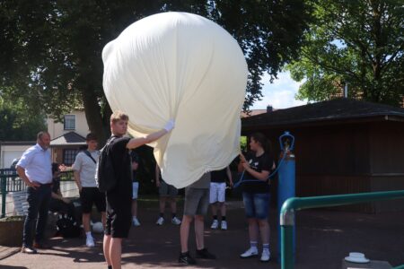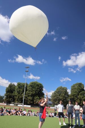 Am 25.06. schickte der Info-Kurs der Jahrgangsstufe 10 erfolgreich ein Wetterballon in die Atmosphäre.  Mit modernster Technik ausgestattet, stieg der Ballon immer höher und sammelte wertvolle Daten zu Temperatur, Luftdruck und Luftfeuchtigkeit in verschiedenen Höhen. Außerdem wurden atemberaubende Bilder aus luftiger Höhe aufgenommen!