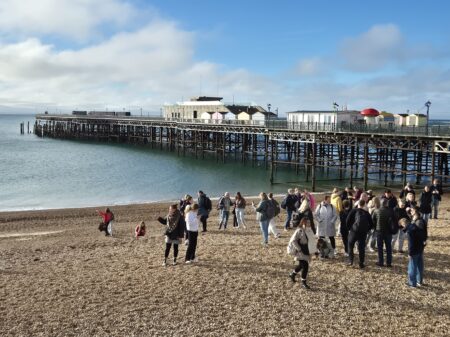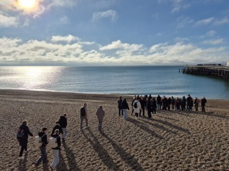 Der letzte Tag stand schließlich im Zeichen der Stadt Hastings selbst. Nach der Verabschiedung vom überaus freundlichen Hauswirt Toni aus dem White Rock Mansion mit allerlei Gastgeschenken, genoss die Reisegruppe zunächst das herrliche Wetter am englischen Strand.