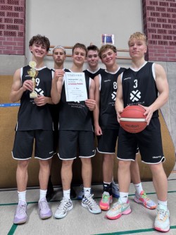 Zum Team gehörten unsere Center Florian Ewers und Timofej Drosd, Forward Fabian Kohlschein, sowie die Guards Magnus Kusche, Jona Mehranfar und Bennet Schäfer. Gecoacht wurde die Mannschaft von Klaus Kuprewitz.