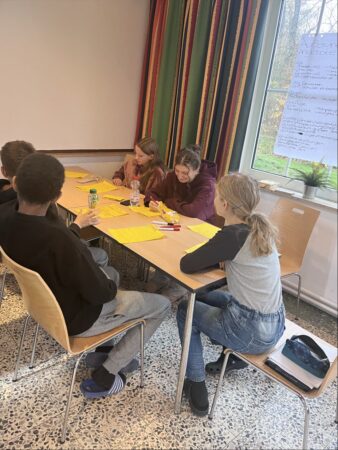 Nach der gemeinsamen Zugfahrt und einer Stärkung mit Kaffee & Kuchen starteten wir mit Kennenlernspielen, bei denen alle – von der 5 bis zur Q1 – schnell miteinander ins Gespräch gekommen sind. 🤝💬