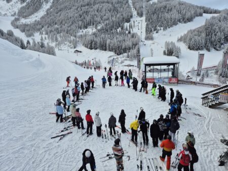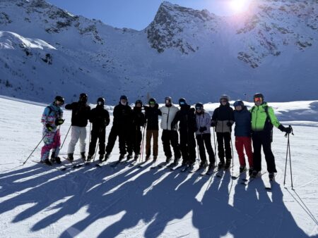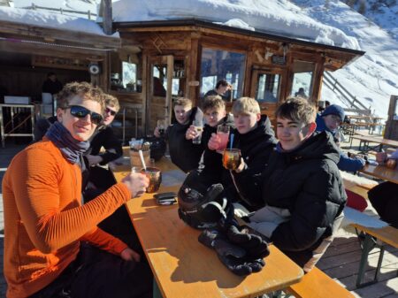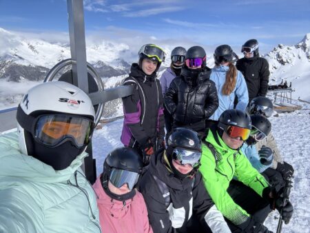 „Helm, Handschuhe, Skipass – alles dabei?“ Früh morgens, kurz vor Sonnenaufgang, starteten 46 Schülerinnen und Schüler der EF des Hüffertgymnasiums jeden Tag in ihr Skiabenteuer.